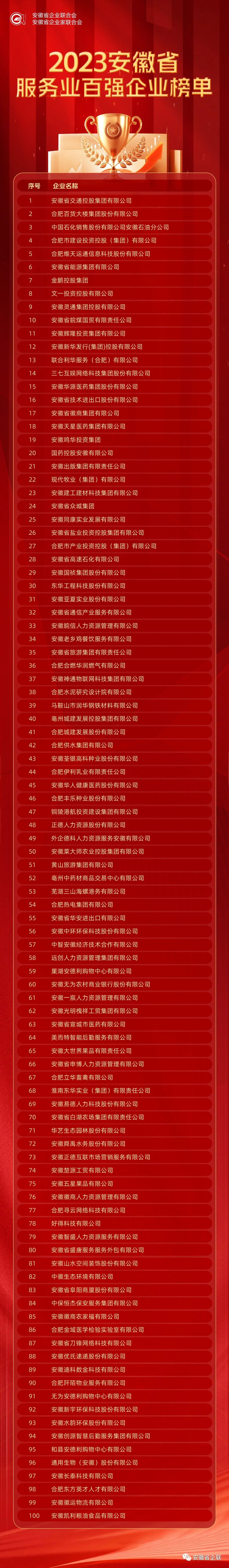 附件:2023安徽省百?gòu)?qiáng)企業(yè)、制造業(yè)、服務(wù)業(yè)百?gòu)?qiáng)企業(yè)名單